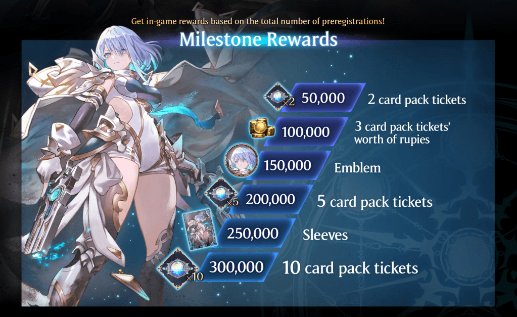 Pre-registration for Shadowverse: Worlds Beyond is now open across various platforms. Players who pre-register will receive rewards based on the total number of sign-ups. For example, at 50,000 pre-registrations, players will receive two card pack tickets, and at 300,000 pre-registrations, all players will receive rewards equivalent to 20 card packs.