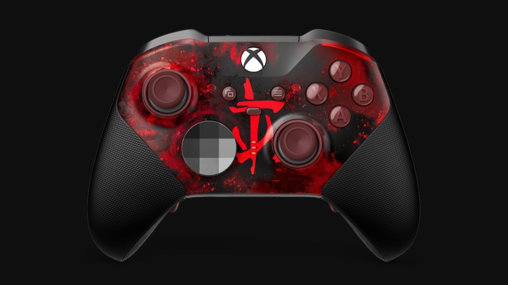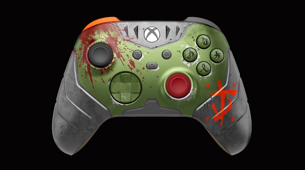 The standard Xbox Wireless Controller gets a Slayer makeover. This version is inspired by the DOOM Slayer’s medieval armor, featuring a matte green shell, silver 3D helmet spikes, and a slick plated sheathing design. The grips are rubberized with a faux-leather texture, topped off with an ominous blood-red thumbstick.