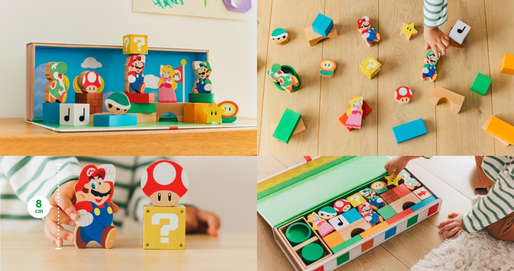 I personally can not freaking wait to get my hands on The new Mario Wood Block Set. It contains Mario, Luigi, Princess Peach and Yoshi. Each character block can also be used as amiibo of the corresponding character. I love Amiibo.