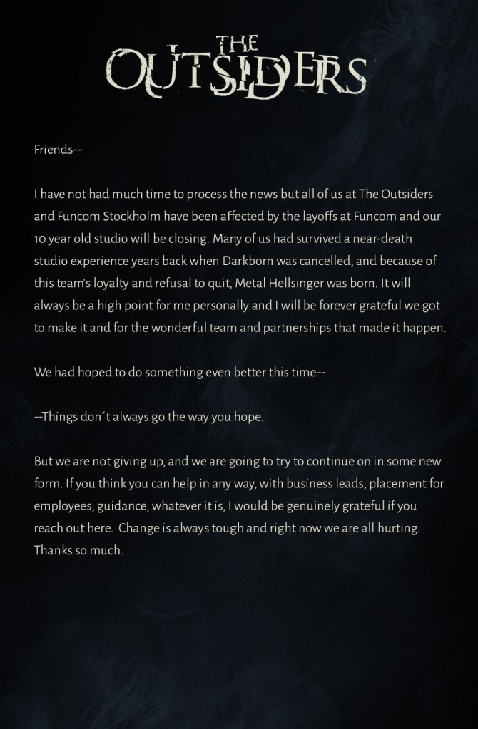 In a year already marked by widespread layoffs and studio closures, the loss of The Outsiders stings all the more because of what they represented: a small, passionate team proving that bold ideas could still break through the noise.
